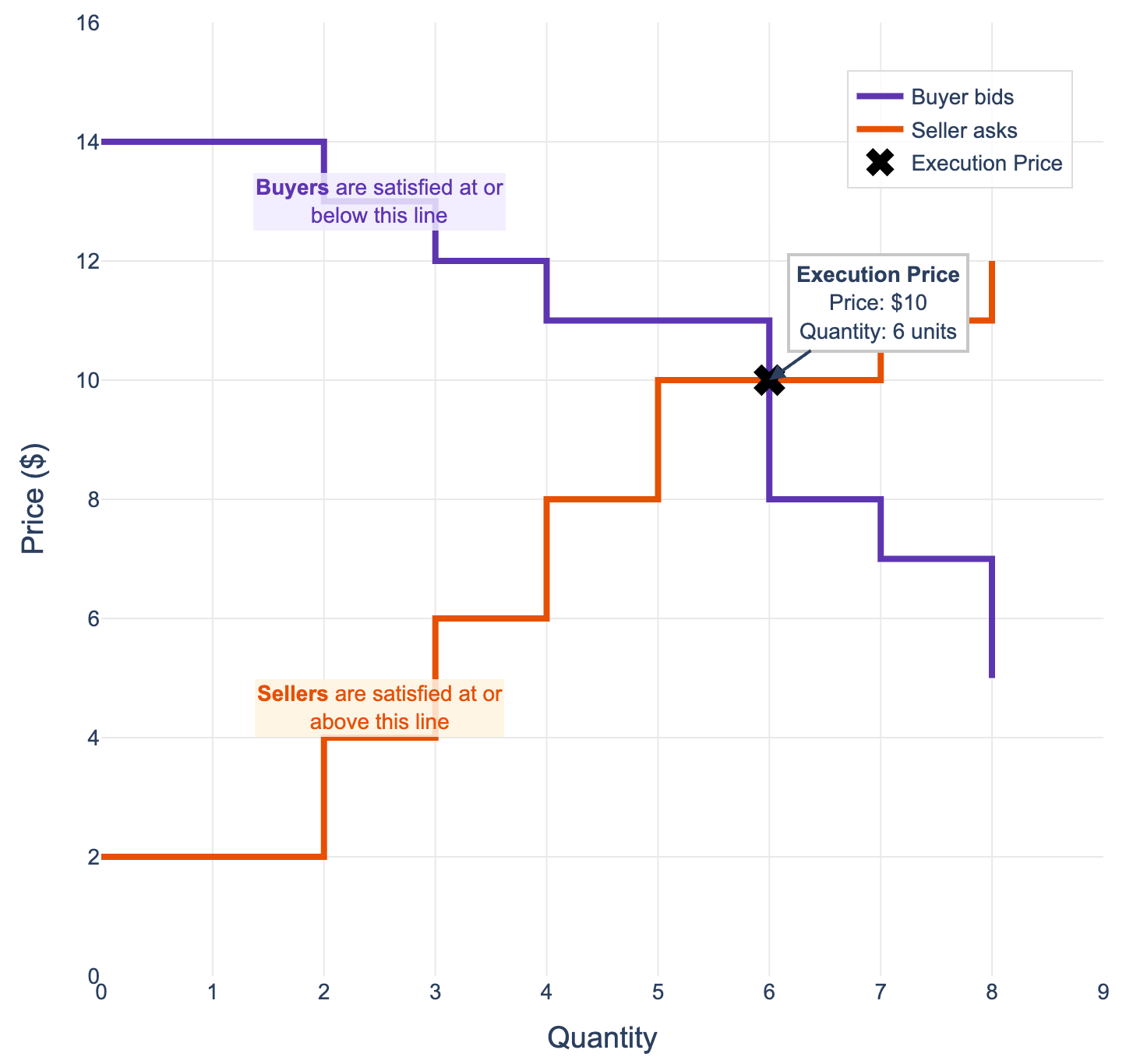 Call auctions are a proof of concept that a reaction-time-proof mechanism can work, but they don’t exist for this reason, they exist as a convenience to provide an orderly start and end to trading. If you were to deliberately design a market around this mechanism, it would make more sense to use a call auction once every fixed-time-interval with no continuous trading in between. This concept has appeared in the economics literature as a “Frequent Batch Auctions”1, this is what I’ll take as the reaction-time-proof mechanism from now on.